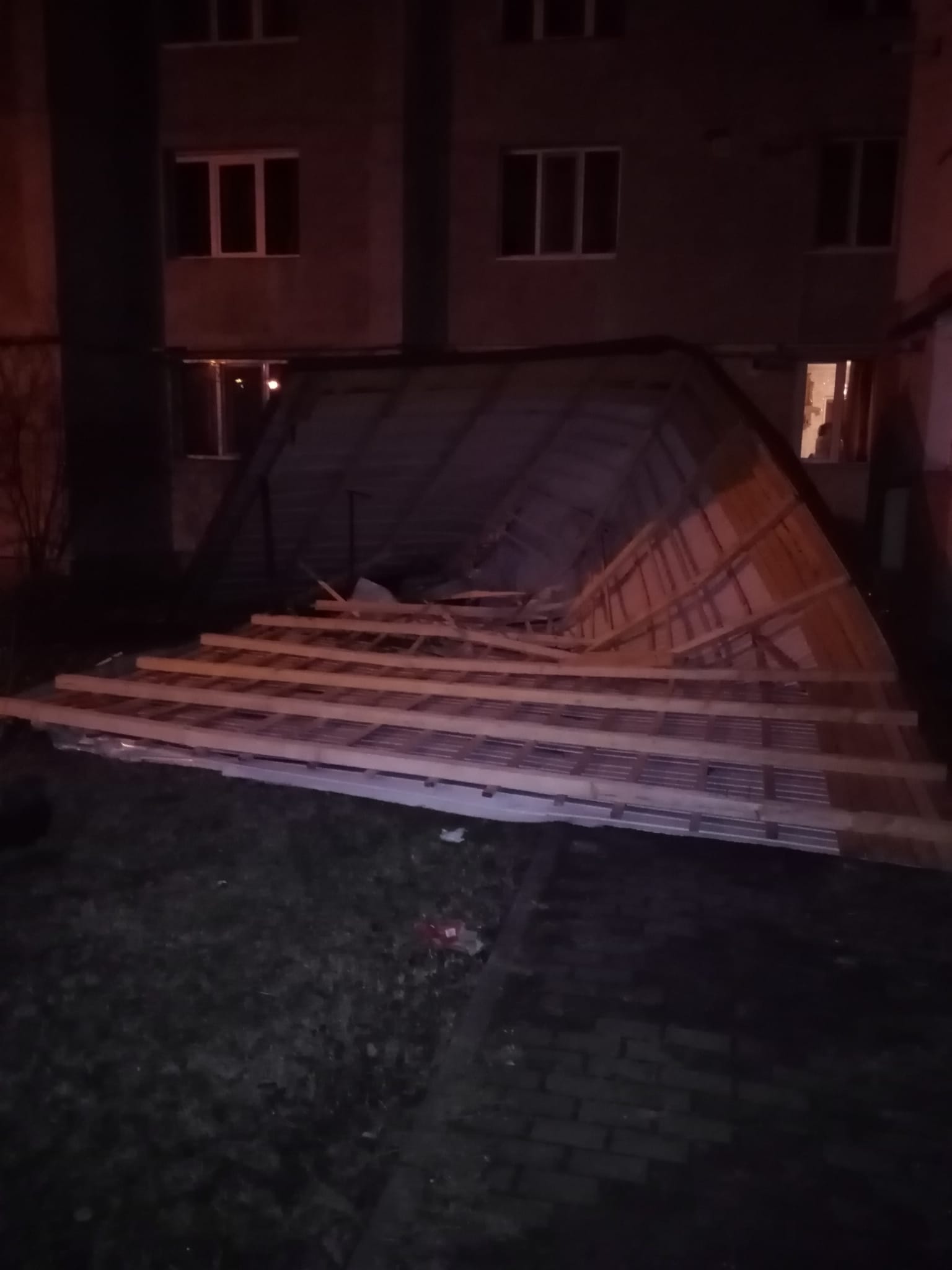 Mai multe maşini au fost distruse, marţi seara, de acoperişurile luate de vântul puternic de pe mai multe blocuri din municipiul Piatra-Neamţ.