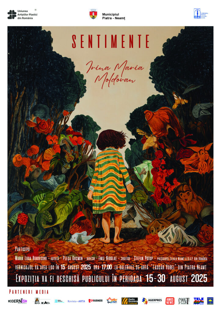 Galeriile de Artă „Lascăr Vorel” din Piatra-Neamț vă invită, în perioada 15-30 august, la o expoziție inedită de pictură, semnată de artista Irina Maria Moldovan, intitulată „Sentimente”.